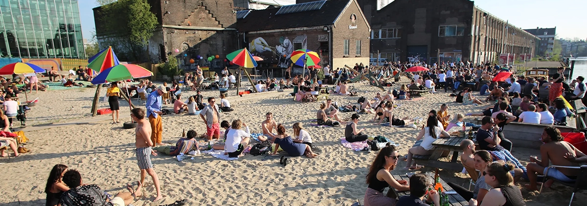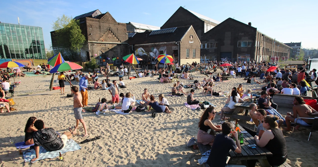Roest, located in the east near Brouwerij ’t IJ, is one of the most popular Urban Beaches in Amsterdam. Set in an old industrial area, it combines a café, bar, and restaurant with a sandy beach and lively events – from parties to cultural gatherings.