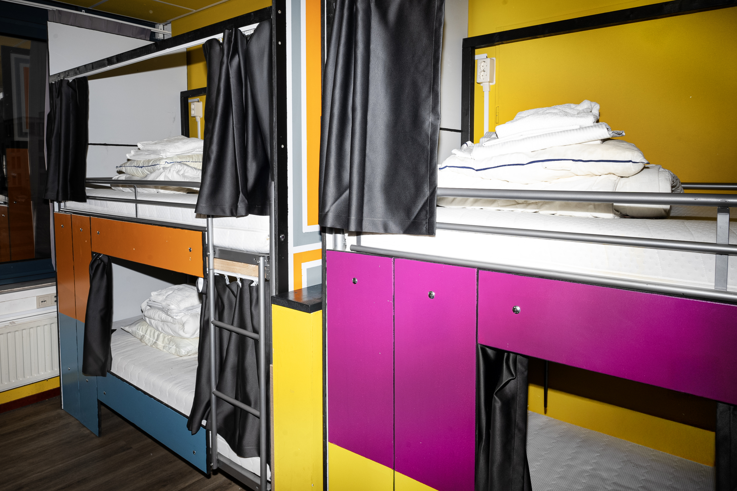 Scroll of veeg naar beneden voor een compleet overzicht van alle 3 super betaalbare slaapzalen die we bij Amsterdam Teleport Hotel hebben.